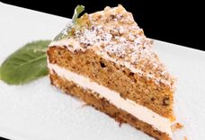 150/2/1 г • Морковный пирог, сливочный крем, грецкие орехи, сахарная пудра, мята