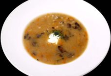 250/20/1 г • Картофель, крупа перловая, лесные грибы, лук, морковь, специи, сметана, зелень свежая