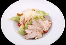 270/1 г • Филе цыпленка, томаты черри, листья салата, соус "Цезарь", гренки, сыр пармезан, зелень