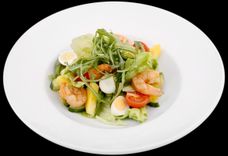 240 г • Креветки королевские, томаты черри, авокадо, огурцы, ананас, яйцо перепелиное, листья салата, заправка для салата , сыр пармезан